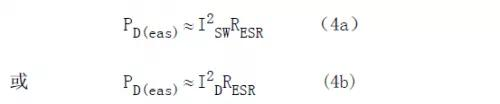 輸入輸出電容是功率開(kāi)關(guān)或輸出整流器產(chǎn)生的高頻電流的唯一來(lái)源(或儲(chǔ)存處),所以通過(guò)觀察這些電流波形可以合理地確定流過(guò)這些電容ESR的電流。這個(gè)電流不可避免地在電容內(nèi)產(chǎn)生熱量。設(shè)計(jì)濾波電容的主要任務(wù)就是確保電容內(nèi)部發(fā)熱足夠低,以保證產(chǎn)品的壽命。式(4)給出了電容的ESR所產(chǎn)生的功率損耗的計(jì)算式。