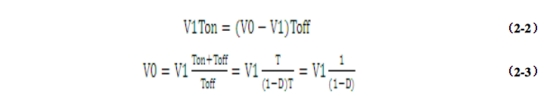 現(xiàn)在來講講開關(guān)電源的電路作業(yè)原理:Boost電路即升壓電路,當(dāng)Q1導(dǎo)通時,能量從輸入電源流入貯存于電感L1中,此刻二極管D1反偏,負(fù)載由濾波電容C1供應(yīng)能量,將C1中貯存的電能(C1V02/2)釋放給負(fù)載R1。當(dāng)Q1截止時,電感L1中電流不能驟變,此刻二極管D1導(dǎo)通,電感中貯存的能量(L1I2/2)經(jīng)二極管D1,流入電容C1,并供應(yīng)負(fù)載R1。根據(jù)電感的伏秒平衡,在一個周期內(nèi)電感的伏秒乘積和為零。假如Q1導(dǎo)通時刻Ton越大,那么Q1截止時提供應(yīng)負(fù)載的電壓就會越大。下面經(jīng)過詳細(xì)的計算來加深了解:根據(jù)伏秒平衡有式(2-2)、(2-3)。