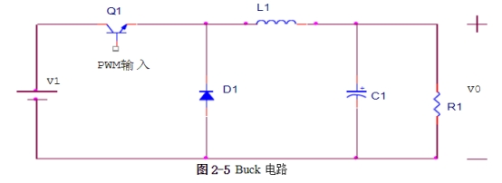 由(2-5)式可知,經(jīng)過改動開關(guān)管的占空比可以操控輸出平均電壓的巨細(xì)。因為占空比總是小于1,所以V0總是小于V1,所以說Buck電路是降壓電路。