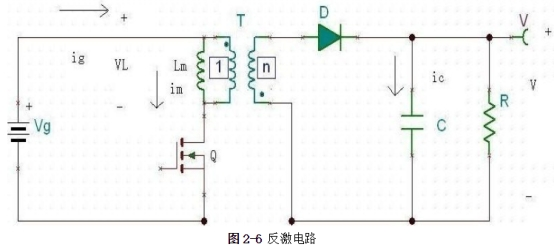 現(xiàn)在來剖析它的作業(yè)原理:當(dāng)Q導(dǎo)通時,二極管截止,根據(jù)電路常識可知此刻VL=Vg,ic=-V/R;當(dāng)Q截止時,二極管D導(dǎo)通,VL=-V/n,ic=i/n-V/R。由伏秒平衡和電容充放電平衡可得: