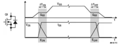 圖10.降壓轉換器中頂部FETQ1的典型開關電源波形和損耗