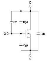 帶外接電容C2的N型MOS管極間電容等效電路MOS管的極間電容柵漏電容Cgd、柵源電容Cgs、漏源電容Cds可以由公式確定,公式中MOS管的反應(yīng)電容Crss,輸入電容Ciss和輸出電容Coss的數(shù)值在MOS管的產(chǎn)品技術(shù)手冊上可以查到。公式如下: