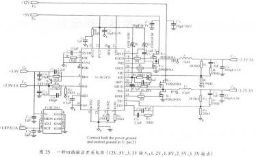 5、開關(guān)電源PCB排版例3終究討論一種多路輸出開關(guān)電源PCB排版關(guān)鍵。此電源有3組輸入電壓(12V,5V和3.3V),4組輸出電壓(3.3v,2.6V,1.8V,1.2V)。該電源運用了,一集成多路開關(guān)控制器(Serotech類型SC2453)。SC2453供應(yīng)了4.5V~30V的寬輸入電壓范圍,兩個高達700kHz開關(guān)頻率和高達15A輸出電流,以及低至0.5V輸出電壓的同步降壓轉(zhuǎn)換器。它還供應(yīng)了一個專用可分配正壓線性調(diào)節(jié)器和一個專用可分配負壓線性調(diào)節(jié)器。TSSOP-28封裝減小了所需線路板面積。兩個異相降壓轉(zhuǎn)換器可以減小輸入電流紋波。圖25是這種多路開關(guān)電源的原理圖。其間3.3V輸出由5V輸人產(chǎn)生,l.2V輸出由12V輸入產(chǎn)生,2.6V和1.8V輸出由3.3V輸入產(chǎn)生。由于該電源上所有元器件都有必要被放置在一個面積較小的PCB上,為此有必要將電源的功率地層和控制信號地層分隔開來。參照前面幾節(jié)中討論過的關(guān)鍵,首要將圖25中銜接到功率地層的元器件和銜接到控制信號地層的元器件區(qū)別開來,然后將控制信號元器件放在信號地層上并靠近SC2453控制信號地層與功率地層通過單點相銜接。這銜接點一般會挑選在控制芯片的接地腳(SC2453中的腳21)。圖26詳細描述了該電源排版辦法。