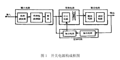 開(kāi)關(guān)電源就是采用半導(dǎo)體器件去作為開(kāi)關(guān)元件,通過(guò)周期性的開(kāi)關(guān),控制開(kāi)元件來(lái)調(diào)整輸出電壓。開(kāi)關(guān)電源的構(gòu)成框圖如圖1所示,它由輸入電路、變換電路、輸出電路和控制電路等組成。功率變換是其核心部分,主要由開(kāi)關(guān)電路和變壓器組成。為了滿足高功率密度的要求,變換器需要工作在高頻狀態(tài),開(kāi)關(guān)晶體管要采用開(kāi)關(guān)速度高、導(dǎo)通和關(guān)斷時(shí)間短的晶體臂,最典型的功率開(kāi)關(guān)晶體管有功率晶體管(CTR)、功率場(chǎng)效應(yīng)管((MOSFET)和絕緣型雙極型晶體管(IGBT)等3種??刂品绞椒譃槊}寬調(diào)制、脈頻調(diào)制、脈寬和頻率混合調(diào)制等3種,其中最常用的是脈寬調(diào)制(PWM)方式。