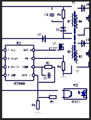 3、保護回路:PC1芯片本身和3腳外圍元件R4構成過流保護回路;N1繞組上并聯(lián)的D2、R6、C4元件構成了IGBT的保護電路;實質上穩(wěn)壓回路的電壓反饋信號——穩(wěn)壓信號,也可看作是一路電壓保護信號。但保護電路的內容并不僅是局限于保護電路本身,保護電路的起控往往是由于負載電路的異常所引起。
