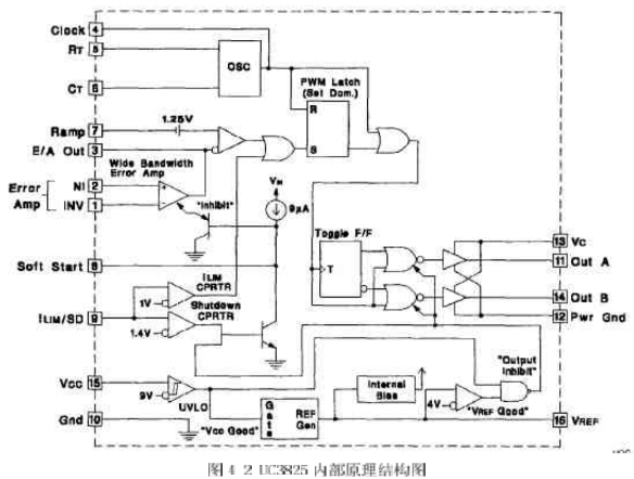 根據(jù)我們所設(shè)計的開關(guān)電源系統(tǒng)的要求,我們選的PWM集成控制器為UC3825。下面將詳細介紹此芯片的主要特點、工作原理和應(yīng)用及調(diào)試。