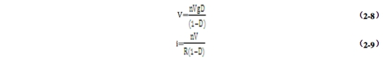 現(xiàn)在來剖析它的作業(yè)原理:當(dāng)Q導(dǎo)通時,二極管截止,根據(jù)電路常識可知此刻VL=Vg,ic=-V/R;當(dāng)Q截止時,二極管D導(dǎo)通,VL=-V/n,ic=i/n-V/R。由伏秒平衡和電容充放電平衡可得: