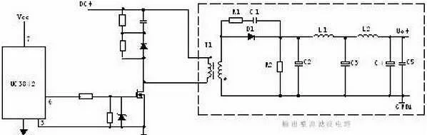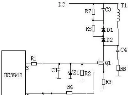 R4、C3、R5、R6、C4、D1、D2組成緩沖器,和開關(guān)電源MOS管并接,使開關(guān)電源管電壓應(yīng)力削減,EMI削減,不發(fā)生二次擊穿。在開關(guān)電源管Q1關(guān)斷時,變壓器的原邊線圈易發(fā)生尖峰電壓和尖峰電流,這些元件組合一起,能很好地吸收尖峰電壓和電流。從R3測得的電流峰值信號參與當(dāng)前作業(yè)周波的占空比操控,因此是當(dāng)前作業(yè)周波的電流束縛。當(dāng)R5上的電壓抵達(dá)1V時,UC3842停止作業(yè),開關(guān)電源管Q1當(dāng)即關(guān)斷。R1和Q1中的結(jié)電容CGS、CGD一起組成RC網(wǎng)絡(luò),電容的充放電直接影響著開關(guān)電源管的開關(guān)電源速度。R1過小,易引起振動,電磁攪擾也會很大;R1過大,會下降開關(guān)電源管的開關(guān)電源速度。Z1一般將MOS管的GS電壓束縛在18V以下,然后維護(hù)了MOS管。